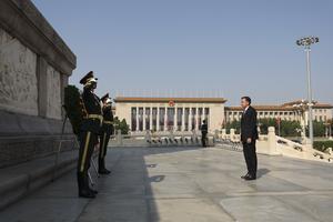 (250909) -- BEIJING, 9 septiembre, 2025 (Xinhua) -- El primer ministro portugués, Luis Montenegro, deposita una ofrenda floral en el...