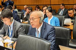 (250910) -- VIENA, 10 septiembre, 2025 (Xinhua) -- Li Song, representante permanente de China ante el Organismo Internacional de Energía...