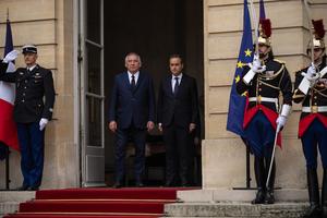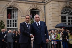 (250910) -- PARIS, 10 septiembre, 2025 (Xinhua) -- El recién nombrado primer ministro francés, Sebastien Lecornu (i-frente), asiste a una...