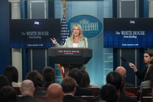 (250910) -- WASHINGTON, 10 septiembre, 2025 (Xinhua) -- Imagen del 9 de septiembre de 2025 de la secretaria de prensa...