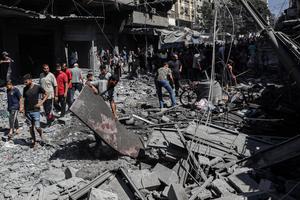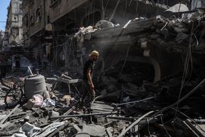 (250911) -- GAZA, 11 septiembre, 2025 (Xinhua) -- Un palestino inspecciona el daño de varias viviendas en el interior del...