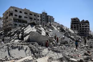 (250911) -- CIUDAD DE GAZA, 11 septiembre, 2025 (Xinhua) -- Imagen del 10 de septiembre de 2025 de palestinos inspeccionando...