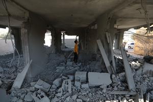 (250911) -- TUBAS, 11 septiembre, 2025 (Xinhua) -- Imagen del 10 de septiembre de 2025 de un palestino inspeccionando una...