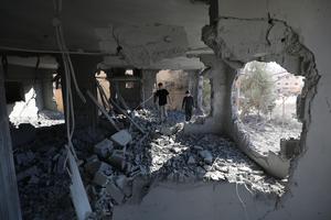 (250911) -- TUBAS, 11 septiembre, 2025 (Xinhua) -- Imagen del 10 de septiembre de 2025 de palestinos inspeccionando una vivienda...