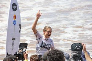 (250914) -- LA LIBERTAD, 14 septiembre, 2025 (Xinhua) -- Morgan Cibilic, de Australia, controla su tabla sobre una ola, durante...