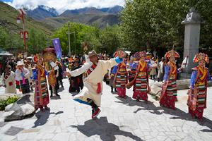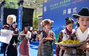 (250912) -- LHASA, 12 septiembre, 2025 (Xinhua) -- Personas presentan especialidades locales en la ceremonia de inauguración de un festival...