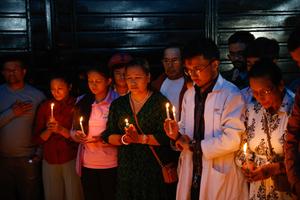 (250912) -- KATMANDU, 12 septiembre, 2025 (Xinhua) -- Imagen del 11 de septiembre de 2025 de personas asistiendo a una...