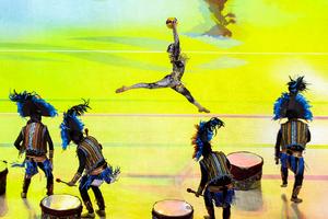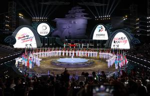 (250912) -- QINHUANGDAO, 12 septiembre, 2025 (Xinhua) -- Artistas realizan una presentación durante la ceremonia de apertura del Campeonato Mundial...
