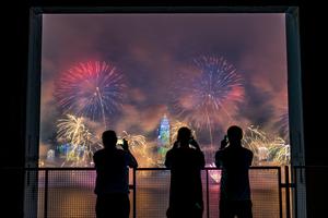 (250912) -- WUHAN, 12 septiembre, 2025 (Xinhua) -- Personas observan fuegos artificiales durante la ceremonia de apertura de la temporada...