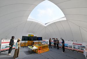 (250912) -- BEIJING, 12 septiembre, 2025 (Xinhua) -- Visitantes aprenden sobre la tecnología de la membrana de aire del pozo...