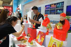 (250912) -- BEIJING, 12 septiembre, 2025 (Xinhua) -- Personas toman fotografías de productos culturales y creativos exhibidos en la Feria...