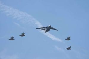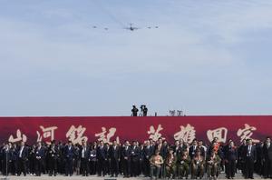 (250912) -- SHENYANG, 12 septiembre, 2025 (Xinhua) -- Un avión de transporte Y-20 de la Fuerza Aérea del Ejército Popular...