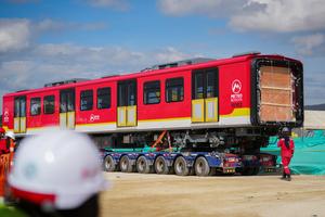 (250911) -- BOGOTA, 11 septiembre, 2025 (Xinhua) -- Trabajadores participan en la descarga de uno de los vagones durante la...