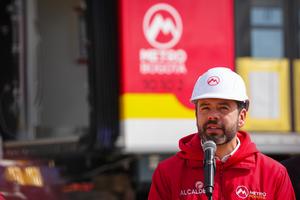 (250911) -- BOGOTA, 11 septiembre, 2025 (Xinhua) -- El alcalde de Bogotá, Carlos Fernando Galán, habla durante la llegada del...