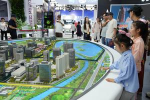 (250912) -- BEIJING, 13 septiembre, 2025 (Xinhua) -- Visitantes observan una maqueta de un circuito de carreras de automóviles para...