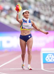 (250913) -- TOKIO, 13 septiembre, 2025 (Xinhua) -- La medallista de bronce Paula Milena Torres, de Ecuador, festeja al término...