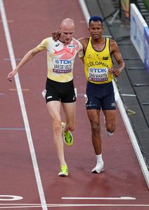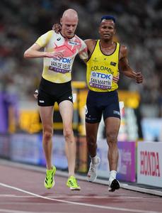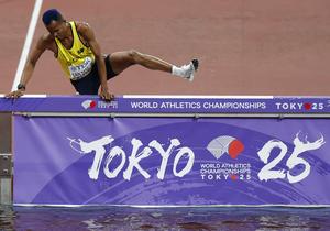 (250913) -- TOKIO, 13 septiembre, 2025 (Xinhua) -- Carlos San Martín, de Colombia, compite durante las eliminatorias de 3000 m...