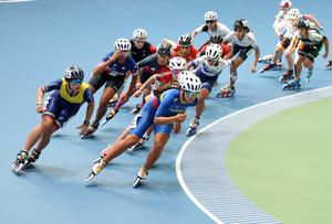 (250913) -- QINHUANGDAO, 13 septiembre, 2025 (Xinhua) -- Manuela Rodríguez Torres (d-frente), de Colombia, compite durante la ronda 1 de...