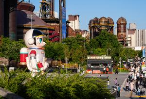 (250914) -- BEIJING, 14 septiembre, 2025 (Xinhua) -- Personas toman fotografías de la escultura de Pop Mart, durante la Feria Internacional de Comercio de Servicios de China (CIFTIS, por sus siglas en inglés) 2025, en el Parque Shougang, en Beijing, capital de China, el 14 de septiembre de 2025. La CIFTIS 2025 concluyó en Beijing el domingo. (Xinhua/Chen Yehua) (rtg) (ah)