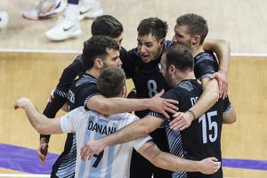 (250914) -- CIUDAD DE PASAY, 14 septiembre, 2025 (Xinhua) -- Jugadores de Argentina, festejan un punto durante el partido del...