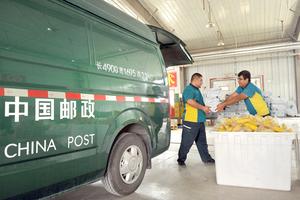(250916) -- URUMQI, 16 septiembre, 2025 (Xinhua) -- Imagen del 10 de septiembre de 2025 de trabajadores postales empaquetando y etiquetando maíz en una cooperativa, en el distrito de Yecheng, en la región autónoma uygur de Xinjiang, en el noroeste de China. En los últimos años, la sucursal de Xinjiang de China Post ha ampliado sus servicios postales a las comunidades locales de zonas remotas y puestos fronterizos. (Xinhua) (oa) (ah) (ce)