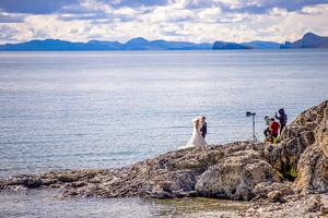 (250917) -- LHASA, 17 septiembre, 2025 (Xinhua) -- Imagen del 16 de septiembre de 2025 de turistas tomándose fotografías de boda junto al Nam Co, el lago de agua salada más alto del mundo, en la región autónoma de Xizang, en el suroeste de China. El Nam Co, situado en la meseta Qinghai-Xizang, con una altitud de 4.718 metros, es el segundo lago más grande de la región. (Xinhua/Jiang Fan) (jg) (da) (ce)