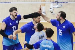 (250916) -- CIUDAD QUEZON, 16 septiembre, 2025 (Xinhua) -- Jugadores de Argentina reaccionan después de marcar un punto durante el partido del grupo C entre Argentina y República de Corea, en el Campeonato Mundial Masculino de la FIVB 2025, en Ciudad Quezón, Filipinas, el 16 de septiembre de 2025. (Xinhua/Rouelle Umali) (oa) (ah) (ce)