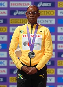 (250915) -- TOKIO, 15 septiembre, 2025 (Xinhua) -- La medallista de plata, Tina Clayton, de Jamaica, es vista durante la ceremonia de premiación de los 100 m femeninos en el Campeonato Mundial de Atletismo 2025, en Tokio, Japón, el 15 de septiembre de 2025. (Xinhua/Ju Huanzong) (rtg) (ah) (vf)