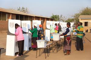 (250916) -- LILONGÜE, 16 septiembre, 2025 (Xinhua) -- Electores llenan las papeletas en un centro de votación, en Lilongüe, Malaui, el 16 de septiembre de 2025. Los electores en Malaui están acudiendo a las urnas para elegir al presidente, representantes parlamentarios y líderes de gobiernos locales. (Xinhua/Roy Nkosi) (jg) (ra) (ce)