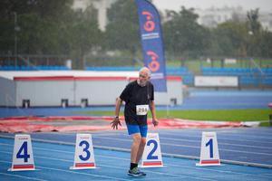 (250915) — VARSOVIA, 15 septiembre, 2025 (Xinhua) — Imagen del 14 de septiembre de 2025 de un participante esperando el comienzo de un evento de carrera durante los VII Juegos Olímpicos de la Tercera Edad, en Varsovia, Polonia. Los Juegos Olímpicos de la Tercera Edad de Varsovia, un evento deportivo anual para personas de 60 años en adelante, se lleva a cabo del 14 al 20 de septiembre. (Xinhua/Jaap Arriens) (rtg) (ah) (ce)