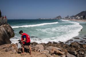 (250921) -- RIO DE JANEIRO, 21 septiembre, 2025 (Xinhua) -- Imagen del 20 de septiembre de 2025 de un voluntario recogiendo basura en la Playa de Copacabana, en Río de Janeiro, Brasil. El Día Mundial de la Limpieza es un evento anual que se conmemora cada tercer domingo de septiembre, con el objetivo de combatir el problema global de los residuos sólidos. (Xinhua/Wang Tiancong) (rtg) (ah)