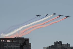 (250919) -- SANTIAGO, 19 septiembre, 2025 (Xinhua) -- Aviones de la Fuerza Aérea chilena sobrevuelan durante la Gran Parada Militar en conmemoración del Día de las Glorias del Ejército, en Santiago, capital de Chile, el 19 de septiembre de 2025. (Xinhua/Jorge Villegas) (jv) (rtg) (ra) (vf)