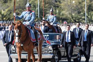 (250919) -- SANTIAGO, 19 septiembre, 2025 (Xinhua) -- El presidente chileno, Gabriel Boric (c), asiste a la Gran Parada Militar en conmemoración del Día de las Glorias del Ejército, en Santiago, capital de Chile, el 19 de septiembre de 2025. (Xinhua/Jorge Villegas) (jv) (rtg) (ra) (vf)