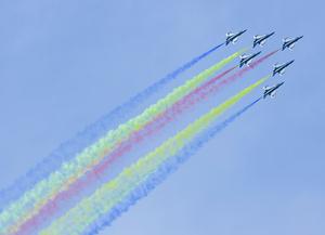 (250919) -- CHANGCHUN, 19 septiembre, 2025 (Xinhua) -- Aviones del Equipo Acrobático Aéreo Bayi de la Fuerza Aérea del Ejército Popular de Liberación (EPL) de China realizan una presentación durante las actividades de la jornada de puertas abiertas de aviación 2025 de la Fuerza Aérea del EPL de China y el Salón Aeronáutico de Changchun, en Changchun, en la provincia de Jilin, en el noreste de China, el 19 de septiembre de 2025. Los eventos comenzaron aquí el viernes. (Xinhua/Yan Linyun) (jg) (da) (vf)