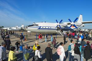 (250919) -- CHANGCHUN, 19 septiembre, 2025 (Xinhua) -- Personas observan un avión de carga Y-8 durante las actividades de la jornada de puertas abiertas de aviación 2025 de la Fuerza Aérea del Ejército Popular de Liberación (EPL) de China y el Salón Aeronáutico de Changchun, en Changchun, en la provincia de Jilin, en el noreste de China, el 19 de septiembre de 2025. Los eventos comenzaron aquí el viernes. (Xinhua/Xu Chang) (jg) (da) (vf)