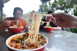 (250918) -- NANNING, 18 septiembre, 2025 (Xinhua) -- Imagen del 14 de septiembre de 2025 de personas disfrutando del Luosifen en un restaurante, en Liuzhou, en la región autónoma de la etnia zhuang de Guangxi, en el sur de China. El Luosifen, o fideos de arroz con caracol de río, llamaron la atención y ganaron popularidad durante la 22ª Exposición China-ASEAN que se celebra actualmente. (Xinhua/Huang Xiaobang) (jg) (ah) (vf)