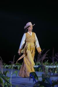 (250921) -- XIANGCHENG, 21 septiembre, 2025 (Xinhua) -- Imagen del 20 de septiembre de 2025 de una mujer presentando un traje tibetano moderno en un desfile de trajes tibetanos, en la aldea de Zhongde del distrito de Xiangcheng, en la prefectura autónoma tibetana de Ganzi, en la provincia de Sichuan, en el suroeste de China. Un desfile de trajes tibetanos que combina la tradición y la modernidad se llevó a cabo en el campo de maíz aquí el sábado. (Xinhua/Jiang Hongjing) (rtg) (ah)