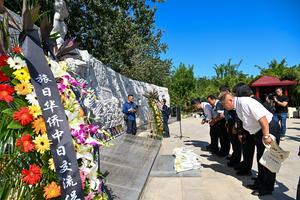 (250919) — TIANJIN, 19 septiembre, 2025 (Xinhua) — Imagen del 18 de septiembre de 2025 de personas realizando reverencias y colocando ofrendas florales en un parque memorial para conmemorar el levantamiento de Hanaoka, en la municipalidad de Tianjin, en el norte de China. Casi 150 chinos y japoneses se reunieron el jueves en la municipalidad de Tianjin, en el norte de China, para conmemorar el 80 aniversario del levantamiento de trabajadores forzados chinos en Japón durante la Segunda Guerra Mundial. (Xinhua/Sun Fanyue) (rtg) (ra) (vf)