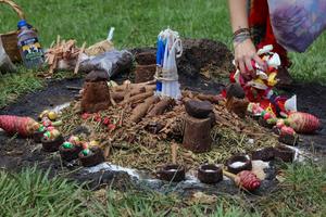 (250921) -- SANTA ANA, 21 septiembre, 2025 (Xinhua) -- Una mujer coloca pétalos de flores en un altar de fuego, durante una ceremonia maya en celebración por el equinoccio de otoño, en el Parque Arqueológico Tazumal, en el municipio de Chalchuapa, en el departamento de Santa Ana, El Salvador, el 21 de septiembre de 2025. (Xinhua/Alexander Peña) (ap) (rtg) (ah)