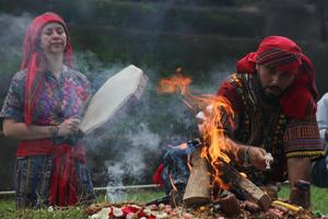 (250921) -- SANTA ANA, 21 septiembre, 2025 (Xinhua) -- Un hombre coloca una vela de ofrenda en un altar de fuego, durante una ceremonia maya en celebración por el equinoccio de otoño, en el Parque Arqueológico Tazumal, en el municipio de Chalchuapa, en el departamento de Santa Ana, El Salvador, el 21 de septiembre de 2025. (Xinhua/Alexander Peña) (ap) (rtg) (ah)
