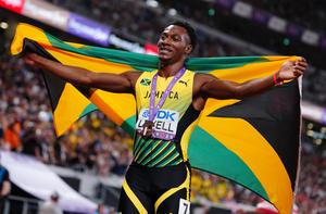 (250919) -- TOKIO, 19 septiembre, 2025 (Xinhua) -- El medallista de bronce Bryan Levell, de Jamaica, festeja al término de la final de los 200m masculinos en el Campeonato Mundial de Atletismo 2025, en Tokio, Japón, el 19 de septiembre de 2025. (Xinhua/Jia Haocheng) (oa) (ra) (vf)