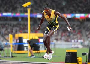 (250919) -- TOKIO, 19 septiembre, 2025 (Xinhua) -- Imagen del 18 de septiembre de 2025 de Navasky Anderson, de Jamaica, reaccionando al término de la semifinal de 800m masculinos en el Campeonato Mundial de Atletismo 2025, en Tokio, Japón. (Xinhua/Jiang Han) (oa) (ra) (vf)