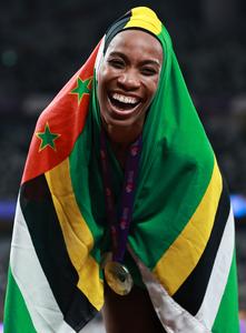 (250918) -- TOKIO, 18 septiembre, 2025 (Xinhua) -- Thea Lafond, de la Mancomunidad de Dominica, festeja al término de la final de salto triple femenino, en el Campeonato Mundial de Atletismo 2025, en Tokio, Japón, el 18 de septiembre de 2025. (Xinhua/Jiang Han) (rtg) (ra) (ce)
