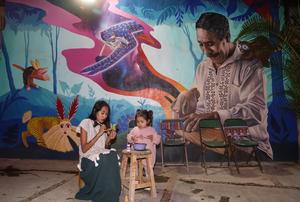 (250918) -- OAXACA, 18 septiembre, 2025 (Xinhua) -- Imagen del 16 de septiembre de 2025 de una artesana y su hija pintando un tallado de madera animales fantásticos en un taller, en San Antonio Arrazola, en el estado de Oaxaca, México. El pueblo de San Antonio Arrazola, en las afueras de la ciudad de Oaxaca es famoso por sus coloridos tallados de madera animales fantásticos. Los tallados de madera animales fantásticos suelen inspirarse en animales, impregnados de elementos fantásticos y mitológicos. Esta artesanía no solo es un arte popular local emblemático, sino también una fuente vital de ingresos para muchas familias locales. (Xinhua/Li Mengxin) (rtg) (ra) (ce)