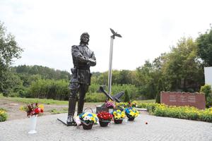 (250918) -- CHEREPYN, 18 septiembre, 2025 (Xinhua) -- Imagen del 1 de septiembre de 2025 de la estatua de bronce del piloto Grigori Kulishenko, en Cherepyn, Ucrania. Nacido en Cherepyn en 1903, el piloto Grigori Kulishenko fue enviado en 1939 para liderar un grupo de pilotos soviéticos en apoyo de la resistencia de China contra la invasión japonesa. (Xinhua/Li Dongxu) (da) (ra) (ce)