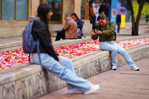 (250920) — BOGOTA, 20 septiembre, 2025 (Xinhua) — Una mujer toma una fotografía de la instalación floral “El Canto del Río” en el marco de la Bienal Internacional de Arte y Ciudad BOG25, en Bogotá, capital de Colombia, el 20 de septiembre de 2025. (Xinhua/Andrés Moreno) (am) (oa) (ra) (ce)