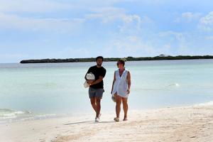 (250920) -- CAYO GUILLERMO, 20 septiembre, 2025 (Xinhua) -- Imagen del 19 de septiembre de 2025 de turistas extranjeros caminando por una playa, en Cayo Guillermo, en el archipiélago de Jardines del Rey, en la provincia Ciego de Avila, Cuba. Un grupo de vacacionistas extranjeros alabó las bondades de la industria turística cubana y criticó las sanciones de Estados Unidos contra la isla caribeña, que dañan esa importante fuente de ingresos en divisas de la economía de la nación antillana. (Xinhua/Joaquín Hernández) (jh) (oa) (ra) (ce)