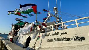 (250922) -- TRIPOLI, 22 septiembre, 2025 (Xinhua) -- Imagen del 21 de septiembre de 2025 del buque Omar Al Mukhtar,...