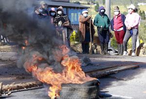 (250922) -- IMBABURA, 22 septiembre, 2025 (Xinhua) -- Indígenas realizan un bloqueo durante el paro nacional indefinido en rechazo a...