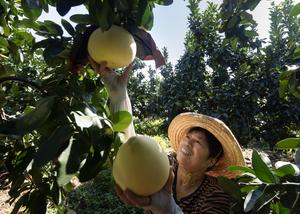 (250922) -- BEIJING, 22 septiembre, 2025 (Xinhua) -- Un agricultor cosecha toronjas en un huerto de toronjas, en el distrito...